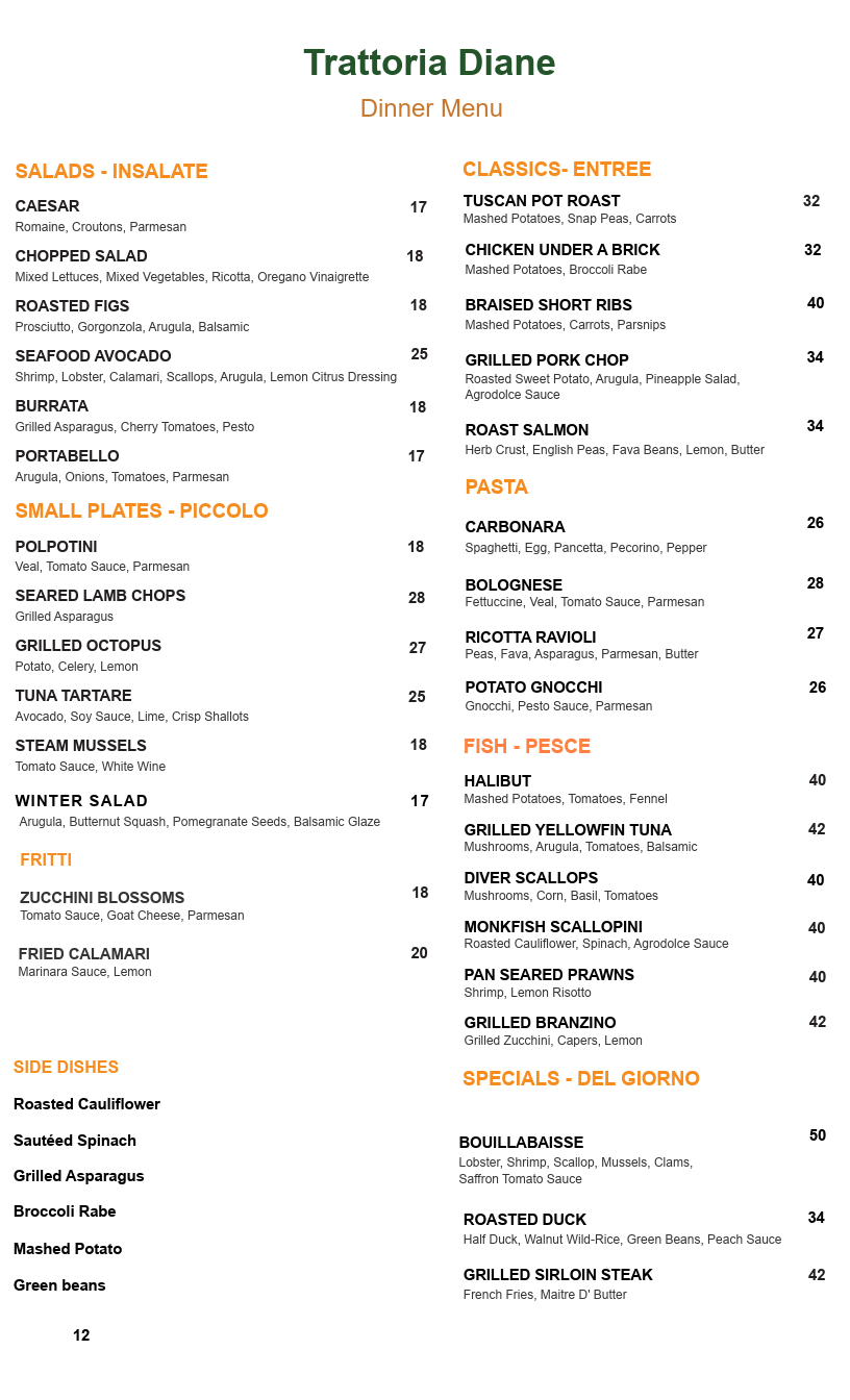 Dinner Menu